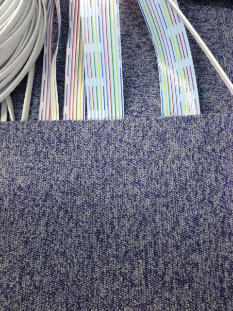 施工方法はビジネスホン主装置よりフラットケーブルを配線しタイルカーペットを1枚1枚剥がしながらその下に配線をしていく施工方法になります